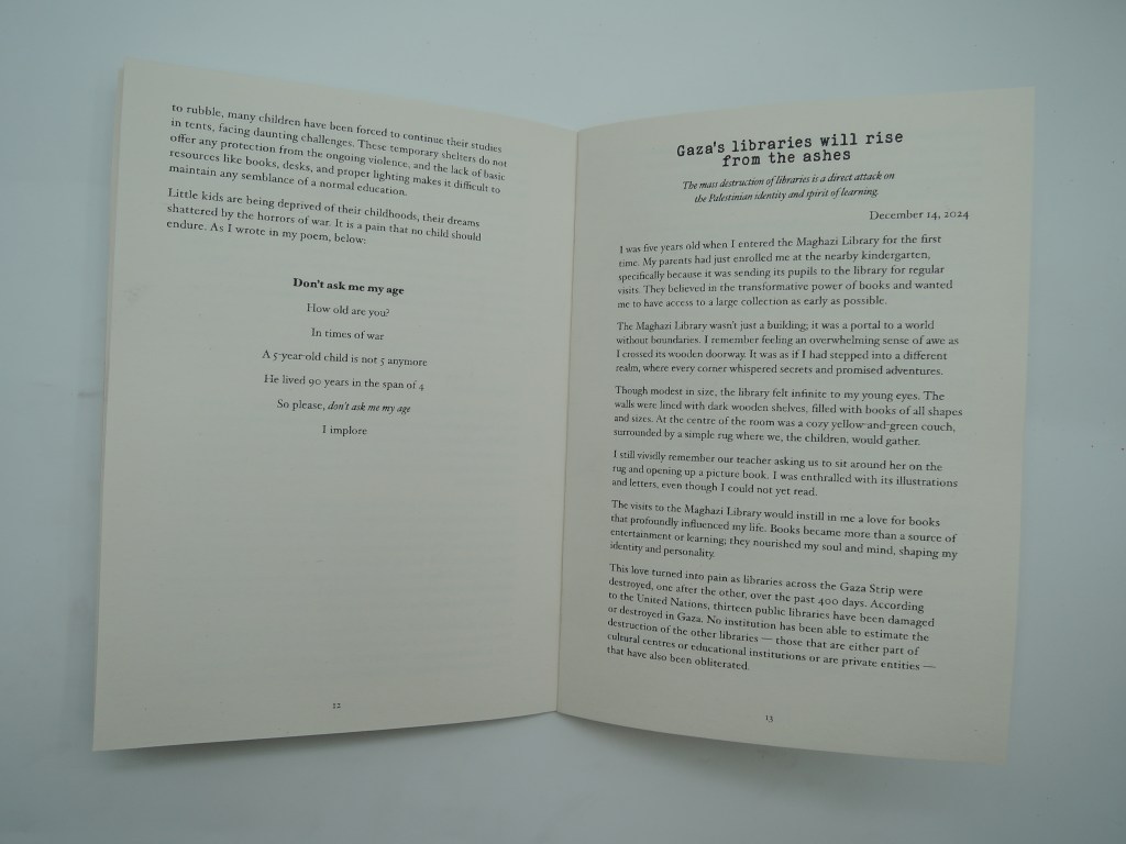 The Writings of Shahd Alnaami is a collection of texts by Palestinian writer Shahd Alnaami, based in Gaza. This second edition gathers writings from the last two years—offering a rare and urgent perspective on everyday life, survival, and witnessing from within ongoing catastrophe.